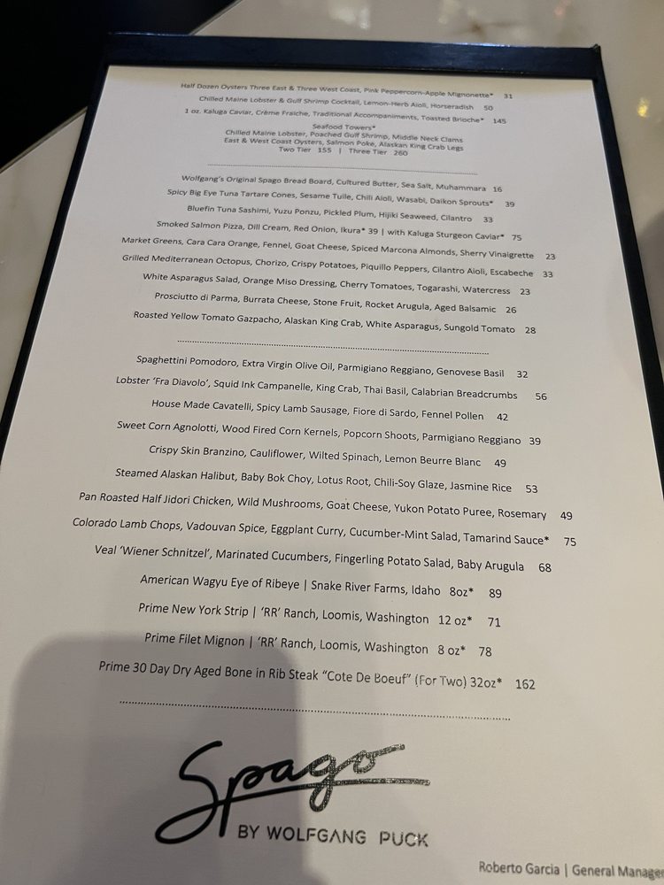 Spago by Wolfgang Puck Menu (Update 2025)